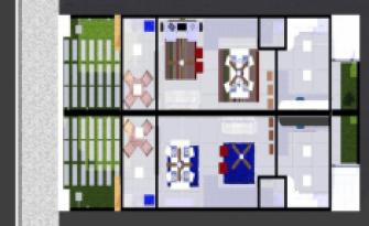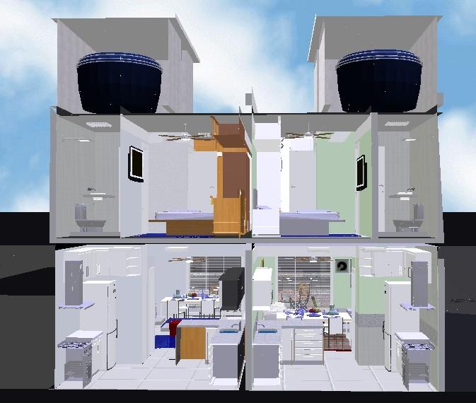 Projeto de residência bifamiliar localizado no bairro de Campo Grande, Rio de Janeiro, composta de 02 suites, area de lazer no térreo , sala com cozinha em conceito aberto. 80 m2 de área construída por casa.