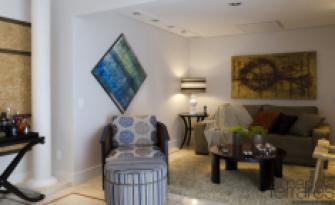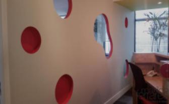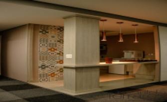 Nesta sala de um escritório a ideia foi criar um painel que trouxesse mais privacidade ao banheiro. Pensando nessa proposta criamos um painel adesivado onde foi inserido nichos para acomodar porta retratos ou objetos, fazendo parte de toda a decoração do ambiente.Siga-nos no instagram @mferrares para acompanhar tudo de perto !