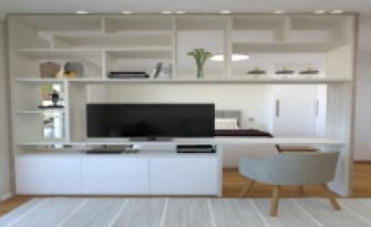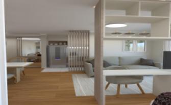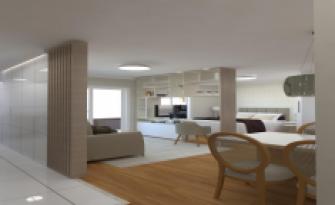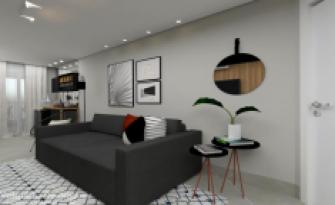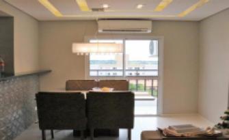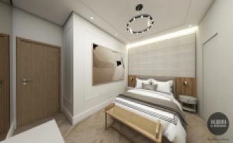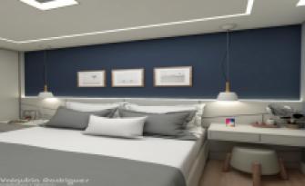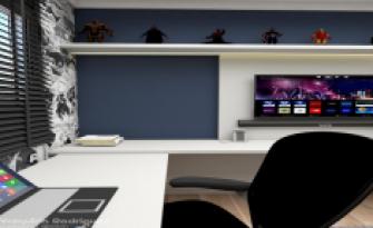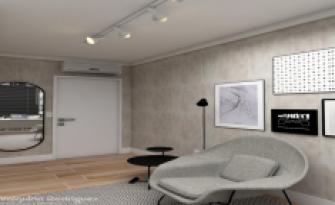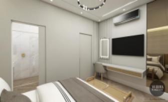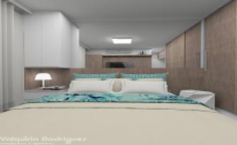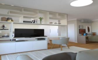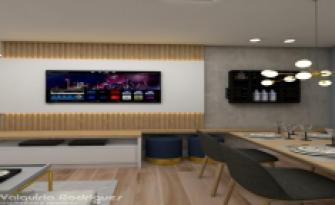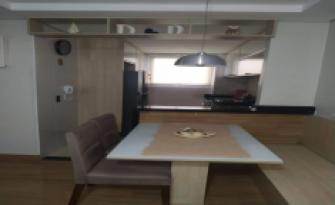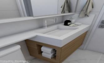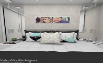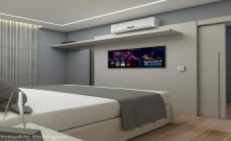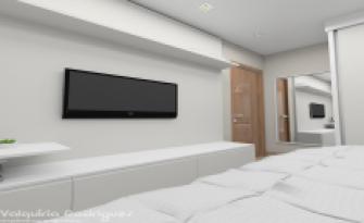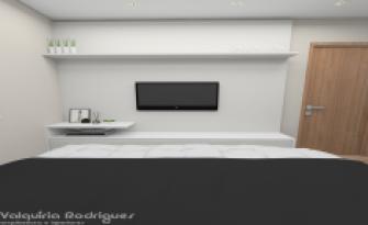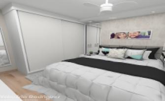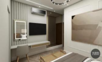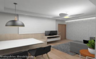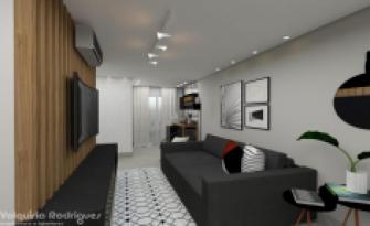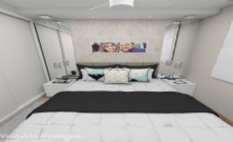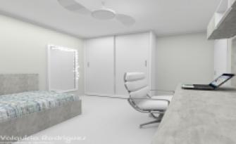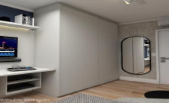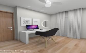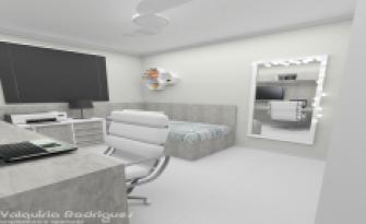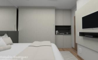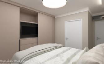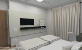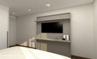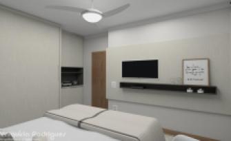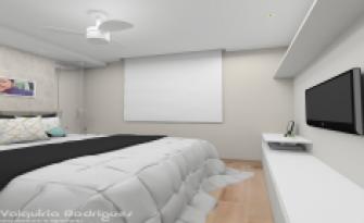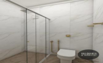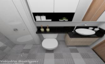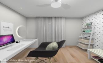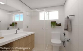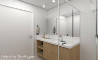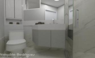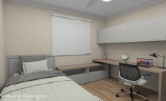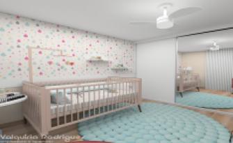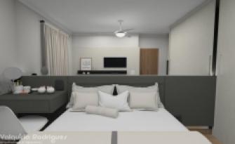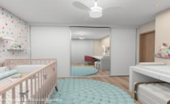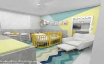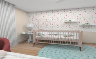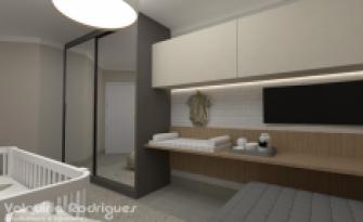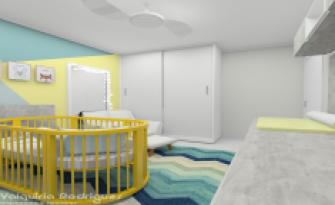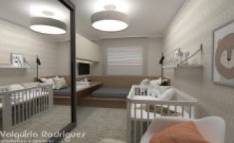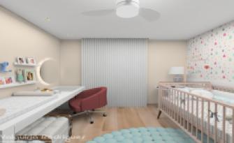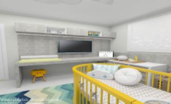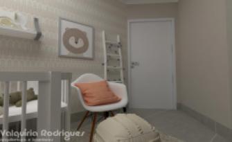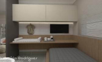 Reforma de apartamento - Plaza Mayor Embraplan Piracicaba - SP. No quartinho do bebê e banheiro, optamos por um tom neutro porque será para um futuro bebê. A proposta atualmente também é um quarto de visitas, quando nós tiramos o trocador e colocamos a cadeira nele, a base do móvel serve como uma mesa de estudos, e quando a gente tira o berço libera mais espaço de circulação para a bicama abrir já que antes de ser um quarto do bebê, o ambiente vai ser um quarto de visitas. No banheiro os tons neutros e marmorizado, não revestimos toda parede deixando o ambiente mais sutil e moderno.
